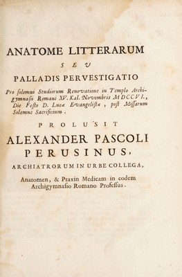 De homine sive de corpore humano vitam habente, ratione tum prosperae, tum afflictae valetudinis libri tres. : In quibus ad mentem veterum, tum recentiorum theoria, ac praxis medica nova, clara, ac brevi methodo exponitur ... / Alexandri Pascoli Perusini.