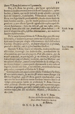 Medicina cortesana satisfactoria. En respuesta a la honoratissima carta, que el Reverendissimo Padre Maestro Fr. Benito Feijoo, Benedictino, escriviò al autor con este titulo: 'Al Doctor Ribera' / [Francisco Suárez de Ribera].
