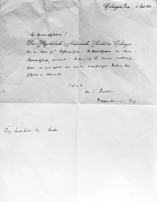 M0019564 Letter to Joseph Lister from the Physikalisch-Medizinische Societat zu Erlangen, 1883