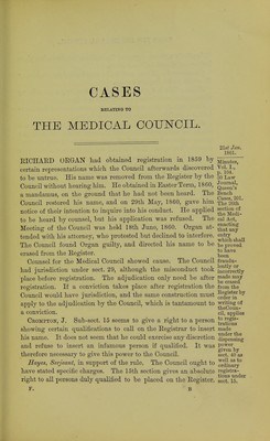 Credit: Cases relating to the medical council : for the use of members of the General Medical Council only / (edited by Fredk, Willis Farrer.). Source: Wellcome Collection.