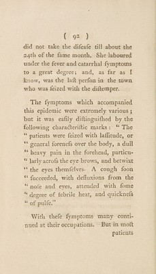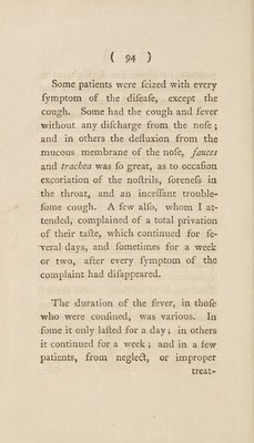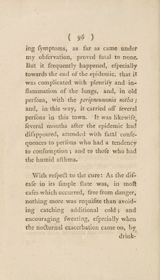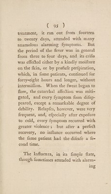 Credit: An account of the epidemical catarrhal fever, commonly called the influenza; : as it appeared in the city and environs of Durham, in the month of June, 1782. To which is prefixed, A discourse on the improvement of medical knowledge. / By P. Dugud Leslie, M.D. F.R.S. With a letter to the author, on the influenza; as it appeared at Newcastle upon Tyne. By John Clark, M.D. Source: Wellcome Collection.