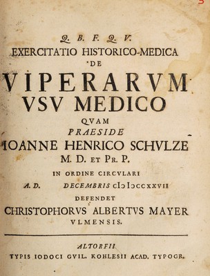 Exercitatio historico-medica de viperarum usu medico ... / [Christoph Albrecht Mayer].