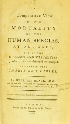 A comparative view of the mortality of the human species, at all ages; and of the diseases and casualties by which they are destroyed or annoyed. Illustrated with charts and tables / By William Black.