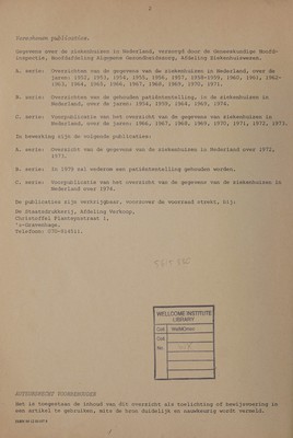 Credit: Overzicht van de gehouden patiëntentelling op 24 april 1974 in de ziekenhuizen in Nederland / [Geneeskundige Hoofdinspectie van de volksgezondheid, in samenw. met het Nationaal Ziekenhuis Instituut, de Nationale Ziekenhuis Raad, het Centraal Bureau voor de Statistiek ; voorw. door R. Drion]. Source: Wellcome Collection.