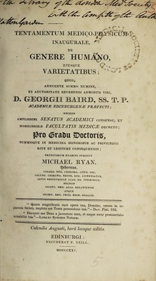 Tentamentum medico-physicum inaugurale, de genere humano, ejusque varietatibus / [Michael Ryan].