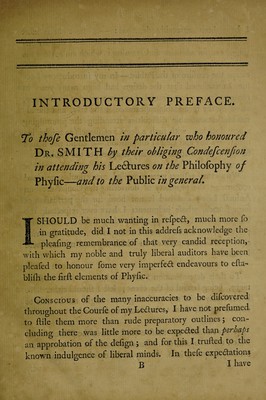 An enlarged syllabus of philosophical lectures, / delivered by Hugh Smith, ... With the principles on which his conjectures are founded concerning animal life, and the laws of the animal oeconomy. These principles are applied not only to the general doctrine of the glands, but likewise to some new thoughts on the nervous system, the gout, and paralytic complaints.