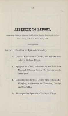 Credit: [Report of the Medical Officer of Health for Bethnal Green, Parish of St. Matthew ]. Source: Wellcome Collection.