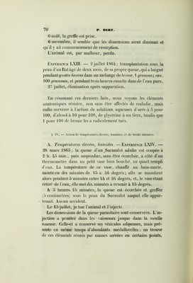 Recherches expérimentales pour servir à l'histoire de la vitalité propre des tissus animaux : thèse présentée à la Faculté des sciences de Paris pour obtenir le grade de docteur ès sciences naturelles / par Paul Bert.