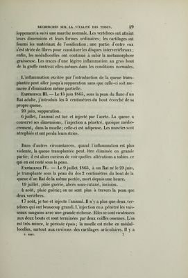 Recherches expérimentales pour servir à l'histoire de la vitalité propre des tissus animaux : thèse présentée à la Faculté des sciences de Paris pour obtenir le grade de docteur ès sciences naturelles / par Paul Bert.