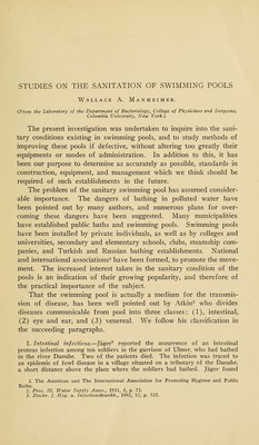 Studies on the sanitation of swimming pools / [by] Wallace A. Manheimer.