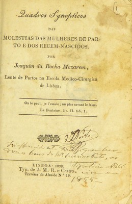 Credit: Quadros synopticos das molestias das mulheres de parto e dos recem-nascidos / [Joaquim da Rocha Mazarem]. Source: Wellcome Collection.