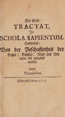 Schola sapientum, das ist: Schul der Weisen: verfasset in unterschiedlichen mystischtheologischen Tractaten / [Theophilus].