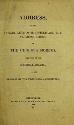 Address, to the inhabitants of Sheffield and the neighbourhood on the cholera morbus / prepared by the Medical Board, at the request of the Provisional Committee.