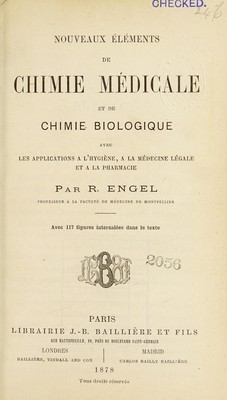 Nouveaux éléments de chimie médicale et de chimie biologique : avec les applications à l'hygiène, à la médecine légale et à la pharmacie / R. Engel.