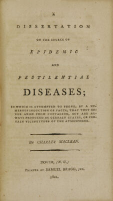 Credit: A view of the science of life : on the principles established in the Elements of medicine, of the late celebrated John Brown, M.D. : with an attempt to correct some important errors of that work : and cases in illustration, chiefly selected from the records of their practice, at the General Hospital, at Calcutta / by William Yates & Charles Maclean ; to which is subjoined a treatise on the action of mercury upon living bodies, and its application for the cure of diseases of indirect debility ; and a dissertation on the source of epidemic and pestilential diseases ; in which is attempted to prove, by a numerous induction of facts, that they never arise from contagion, but are always produced by certain states, or certain vicissitudes of the atmosphere / by Charles Maclean, of Calcutta. Source: Wellcome Collection.