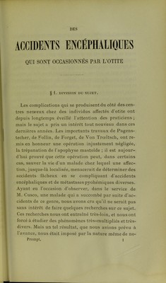 Credit: Des accidents encéphaliques qui sont occasionnés par l'otite / par P.-I. Prompt. Source: Wellcome Collection.