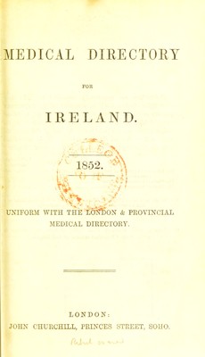 Credit: The medical directory for Ireland. 1852, 1856, 1858-60. Source: Wellcome Collection.
