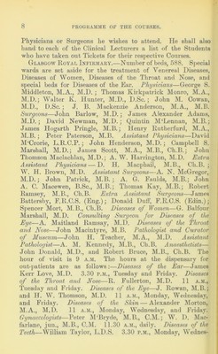 ![THmvcrsit\) of iBlnsiiow. FACULTY OF MEDICINE. PKOGliAMME OF COUESES, EEOULATIONS FOE OEADUATION, AND BUESAEIE8 AND PEIZES UPEN FOR COIMPETI'IION. 1909-1910. [For Ilcfjvlofions as to Degrees of JJ.Sc. in Pnhlk Health and in D/uinnan/, see Science SjjJtalms.] JAME8 CL A 800AY; MACLEII08E & 80N8, G1 8t. Vincent 8ti:eet, Publishci3 ^oohscllcrs to llic tluilicrsitp. 1909.](https://iiif.wellcomecollection.org/image/b24934835_0003.jp2/full/800%2C/0/default.jpg)
