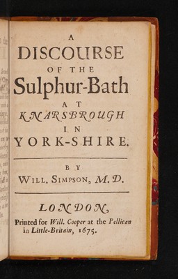 Zymologia physica. Or a brief philosophical discourse of fermentation, from a new hypothesis of acidum and sulphur. Whereby the phoenomena of ... hot-baths ... are solv'd ... With an additional discourse of the sulphur-bath at Knarsbrough ... / [W. Simpson].