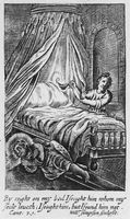 M0016873: Engraving showing a bed with drapery, 18th century. Public Domain Mark. Source: Wellcome Collection.