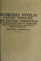 Lectori benevolo S.P.D / [Georg Wolffgang Wedel]. Public Domain Mark. Source: Wellcome Collection.
