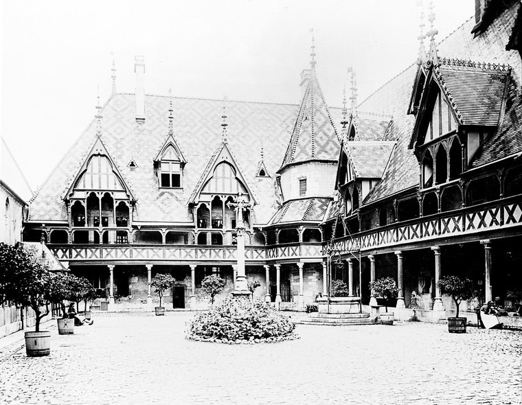 M0010178: Hotel-Dieu, Beaune: courtyard. In copyright. Source: Wellcome Collection.