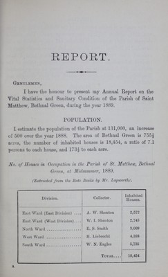 Credit: [Report of the Medical Officer of Health for Bethnal Green]. Source: Wellcome Collection.