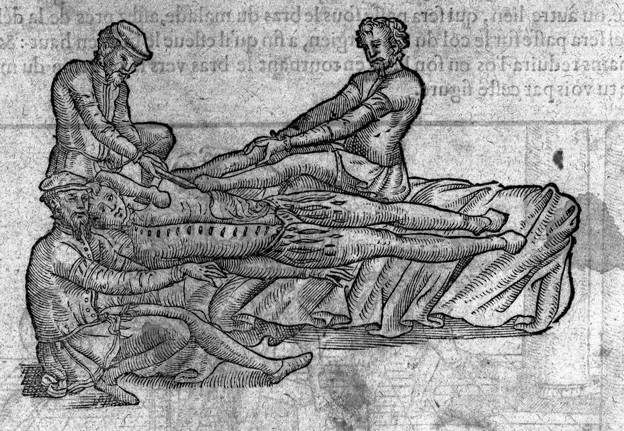 Credit: M0018182: The reduction of a dislocated shoulder, 1575. Source: Wellcome Collection.