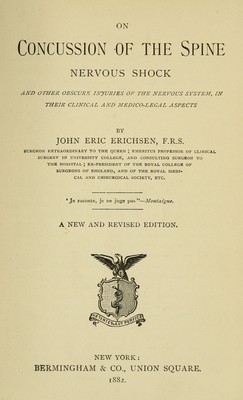 On concussion of the spine : nervous shock, and other obscure injuries of the nervous system in their clinical and medico-legal aspects / by John Eric Erichsen.