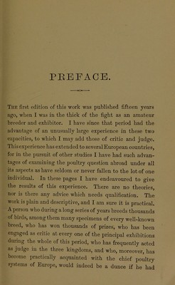 Poultry for prizes and profit : being practical details for the breeding, management and exhibition of domestic fowls In three divisions: I. Breeding poultry for prizes; II. Exhibition poultry; III. Management of the poultry yard / [James Long].