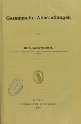 Credit: Gesammelte Abhandlungen / von C. Liebermeister. Source: Wellcome Collection.