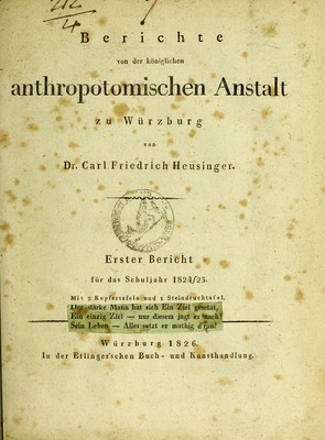 Berichte von der königlichen anthropotomischen Anstalt zu Würzburg / von Carl Friedrich Heusinger. Erster Bericht für das Schuljahr 1824/25.