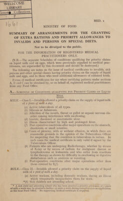 Summary of arrangements for the granting of extra rations and priority allowances to invalids and persons on special diets.