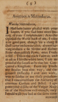 Letters from an Arabian philosopher to a nobleman of Greece ; containing very curious and rare observations concerning the philosophy, physick, divinity and customs of the Eastern philosophers / Translated from an ancient Latin manuscript communicated by P. Grinau ... To which are added, the Entertainments of an Indian king with Pythagoras: and Alexander's conference with Dindimus the Brachman. Extracted out of Palladius.