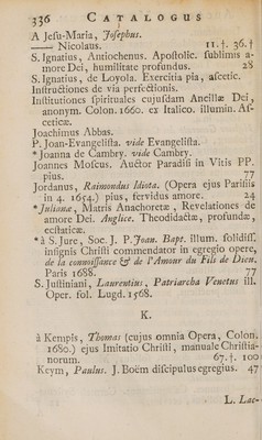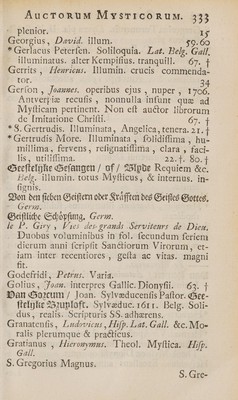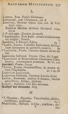 Credit: Petri Poiret Bibliotheca mysticorum selecta, tribus constans partibus, 1. theol. mysticae idea generaliori, 2, auctorum mystic. characteribus praecipuis, 3. eorumdem catalogo, ac de plerisque judicio / Praemittitur præparationis loco clariss. vìri, Jac. Gärden ... dissertatio de theologia pacifica seu comparativa. Sive de theologiæ essentialibus & accessoriis discernendis. Source: Wellcome Collection.