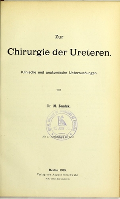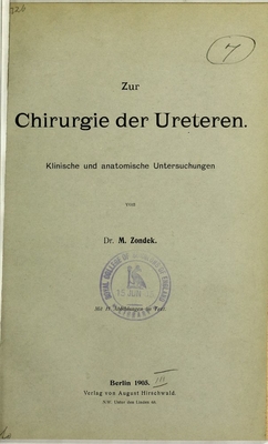 Zur Chirurgie des Ureteren : klinische und anatomische Untersuchungen / von M. Zondek.