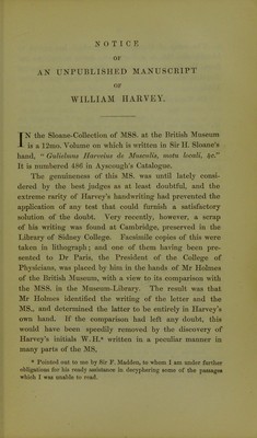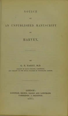 Credit: Notice of an unpublished manuscript of Harvey / by G.E. Paget. Source: Wellcome Collection.
