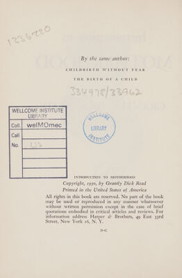 Credit: Introduction to motherhood / [Grantly Dick-Read]. Source: Wellcome Collection.