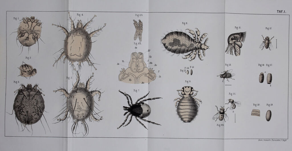 Credit: Die Schmarotzer auf und in dem Körper unserer Haussäugethiere, sowie die durch erstere veranlassten Krankheiten, deren Behandlung und Verhütung / von F.A. Zürn. Source: Wellcome Collection.