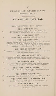 Credit: Annual report : 1932 / Cheyne Hospital for Children. Source: Wellcome Collection.