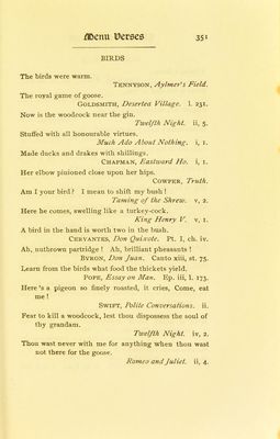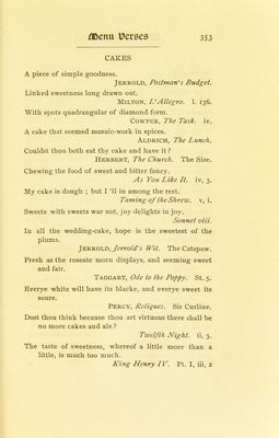 Credit: The banquet book : a classified collection of quotations designed for general reference, and also as an aid in the preparation of the toast list, the after-dinner speech, and the occasional address; together with suggestions concerning the menu and certain other details connected with the proper ordering of the banquet / by Cuyler Reynolds with an introduction by Elbert Hubbard. Source: Wellcome Collection.