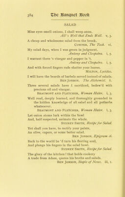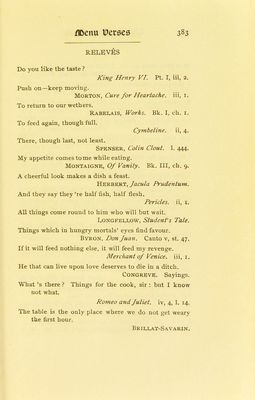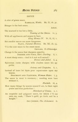 Credit: The banquet book : a classified collection of quotations designed for general reference, and also as an aid in the preparation of the toast list, the after-dinner speech, and the occasional address; together with suggestions concerning the menu and certain other details connected with the proper ordering of the banquet / by Cuyler Reynolds with an introduction by Elbert Hubbard. Source: Wellcome Collection.