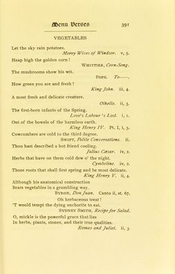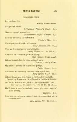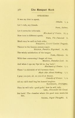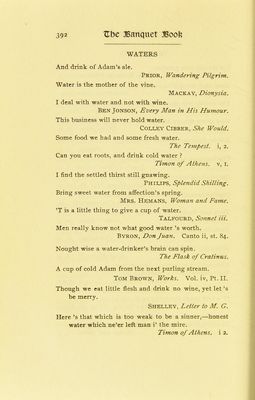 Credit: The banquet book : a classified collection of quotations designed for general reference, and also as an aid in the preparation of the toast list, the after-dinner speech, and the occasional address; together with suggestions concerning the menu and certain other details connected with the proper ordering of the banquet / by Cuyler Reynolds with an introduction by Elbert Hubbard. Source: Wellcome Collection.