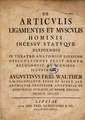 De articulis ligamentis et musculis hominis incessu statuque dirigendis ... observationes fecit, denuo recognovit ... / A.F. Walther.