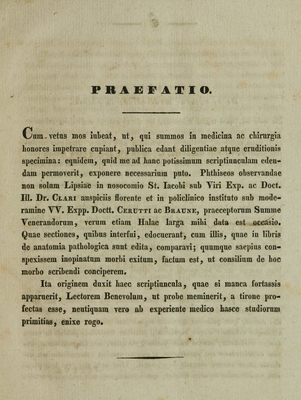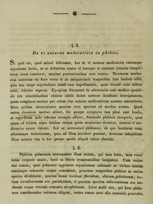 Credit: De vi naturae medicatrice in phthisi : dissertatio inauguralis medica quam ... pro summis in medicina et chirurgia honoribus rite capessendis illustris ictorum ordinis venia in auditorio iuridico die II. m. Augusti a. MDCCCXXXIX / publice defendet auctor Carolus Theocarus Matthes. Source: Wellcome Collection.