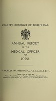 [Report 1923] / Medical Officer of Health, Birkenhead County Borough. Attribution 4.0 International (CC BY 4.0). Source: Wellcome Collection.