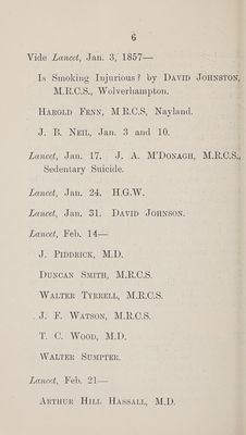 Credit: Is tobacco smoking injurious to health? : medical opinions collated from the Lancet / by Herbert H. Tidswell. Source: Wellcome Collection.