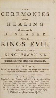 The ceremonies for the healing of them that be diseased with the King's Evil, used in the time of King Henry VII.