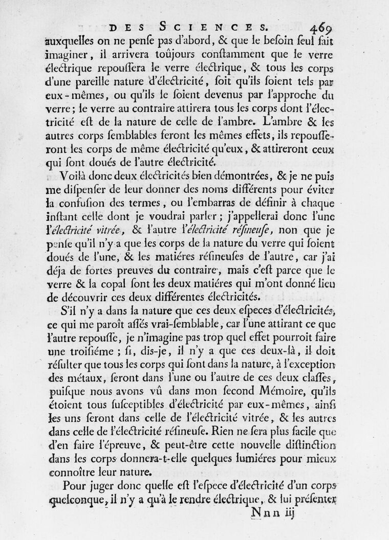 M0014527: The announcement by Dufay of the discovery of two kinds of electricity: resinous and vitreous. In copyright. Source: Wellcome Collection.