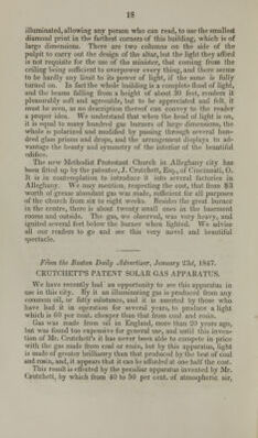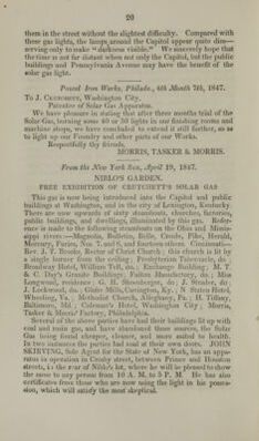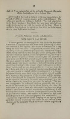 ![MfEir^OLAl'GlS GAS APPARATUS, PATENTED BY JAMES CRUTCHETT, OF WASHINGTON CITY, FOR HITING CITIES, BLOCKS OF BUILDINGS, HOTELS, CHURCHES, PUBLIC HALLS, RESTAURATS, STEAMBOATS, MILLS, FACTORIES, AND PRIVATE RESIDENCES. For General Rights, apply to the Patentee. For Rights in Rhode Island and Connecticut, apply to Calvert, Dawes & Burr, Providence, R. I. For Rights in the State of New York, apply to John Skirving, Esq., 35 Walker Street, New York. For Rights in Massachusetts, New Hampshire and Vermont, apply to the Massachusetts Gas Company, Boston. For Rights for the Western States, apply to the Solar Gas Company, Cincinnati, Ohio. rT,u^rAS*mGTIN GAS M«HT COMPANY. T gfai'Jinri!n°tr80f tCr,,tcl'et,'< Pa*** for making Solar j partments and private establishment* ]■ The capital is not to eSeTfiraJna Sh^T^K ~S> IK* T eaCh Sh?re Rf the tiH of subscribing affirt.£n£ /8*Vr3> tice of Sequent instalments wilI beg,Ten . h„t^teribew ^ may pay one or more „18tai lienrs „£ tbe f ^j,,^^ be regntoted accordingly. B B KRENCH, Washington, D. C, March 16, 1848.J' F vtnmtSiLrs](https://iiif.wellcomecollection.org/image/b2111206x_0001.jp2/full/800%2C/0/default.jpg)